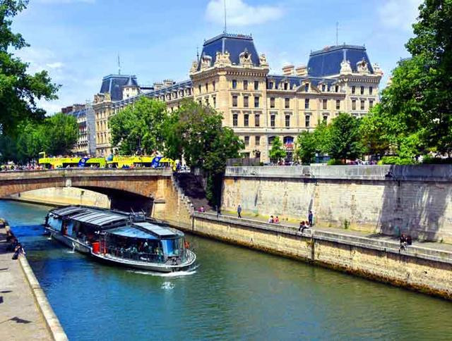 团友们登上双层的游船泛舟塞纳河上,只见两岸很多在此休闲的游客。河上船游其中,一些热情的岸上游客,不时地挥手向游船上友好地致意,塞纳河上洋溢着一派和谐与欢乐。这时船上的扬声器里传出了由男女声分别用中文介绍起塞纳河的话语,并且每到一处两岸的著名建筑或经过的桥梁都有绘声绘色的讲解。