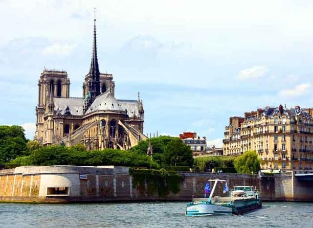 听着金导滔滔不绝的介绍,大家对即将开始的巴黎之行充满了期待。我们的大巴车在车水马龙的巴黎市区中缓缓行进,团友们兴奋地观赏着窗外的美景。虽然堵车依然较为严重,但丝毫没有影响大家的兴致。终于来到塞纳河畔的船上餐厅,用过午餐后随即开始巴黎游的首个项目:乘船塞纳河观光游。