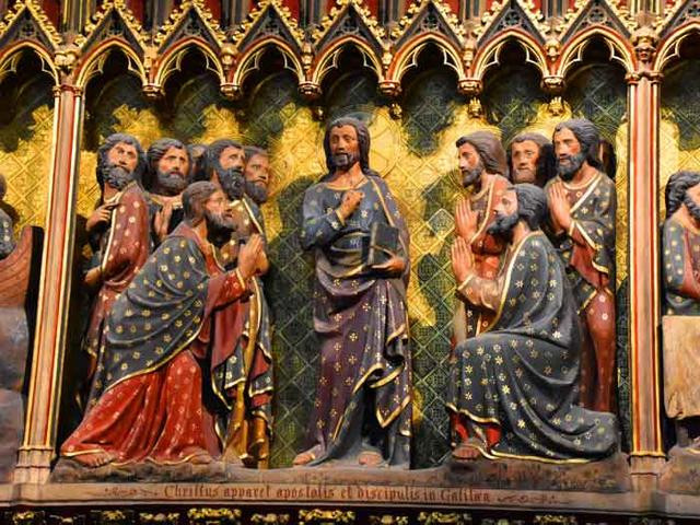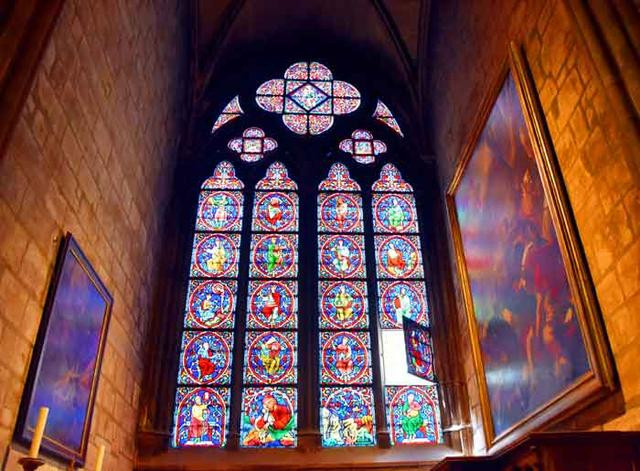 再看主殿四周,连拱廊上方是一带双层窗户的走廊,在它之上是大窗子,透过这些窗子,一束束阳光宁静地射进堂内。于主殿翼部相连的侧殿位置上,是几座充满了17至18世纪艺术作品的礼拜堂。结束了巴黎圣母院的参观,团队在此留下了出行后的第一张合影。