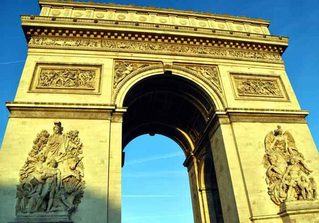 “走欧洲”团队在巴黎最后观光的是凯旋门。6月16日巴黎时间21:30,团队从蒙帕纳斯大厦上下来驱车来到香榭丽舍大道上的凯旋门脚下。虽说已经晚上了,但是依然夕阳还未落下,只可惜拍摄正面有些逆光。
