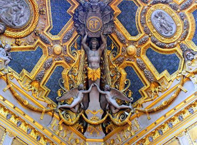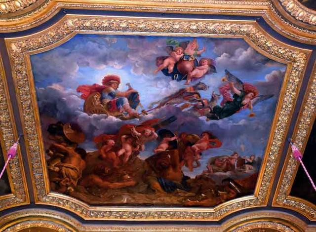 走进凡尔赛宫,只见其宏伟、壮观,内部陈设和装潢极富艺术魅力。五百多间大殿小厅处处金碧辉煌,豪华非凡。内部装饰,以雕刻、巨幅油画及挂毯为主,配有17、18世纪造型超绝、工艺精湛的家具。宫内还陈放着来自世界各地的珍贵艺术品,其中有远涉重洋的中国古代瓷器。