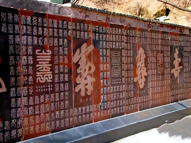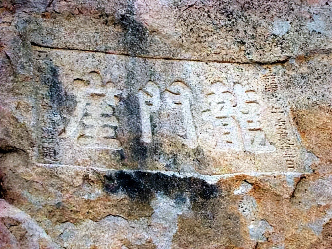 在这些摩崖石刻中,其明代御史孙愈贤题刻的“朔方屏障”,笔画似栋梁,点捺大如牛,绝地百尺,气势雄浑,十分壮观。