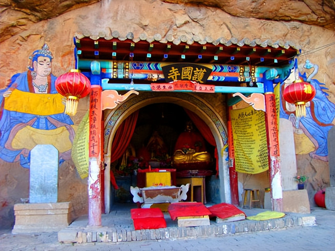 据碑文只可上溯到明代嘉靖壬辰。通过重修护国寺的碑记:“寺隐馋岩,路通大道,控扼羌胡,屏蔽神京,故名护国寺”。可考证护国寺建于明“土木之变”以后,以求保百姓平安,国家太平。据说萧太后(辽)时此洞已经存在,明、清重修。